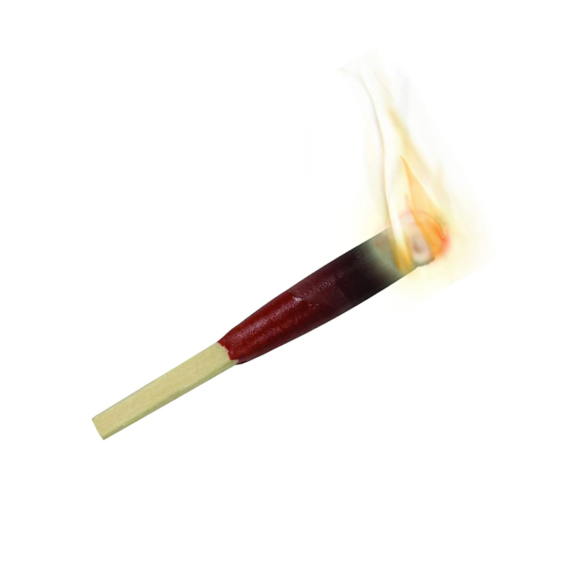 - Barniz grueso: cada cerilla tiene varias capas de barniz inflamable para una llama duradera y resistente a la intemperie
